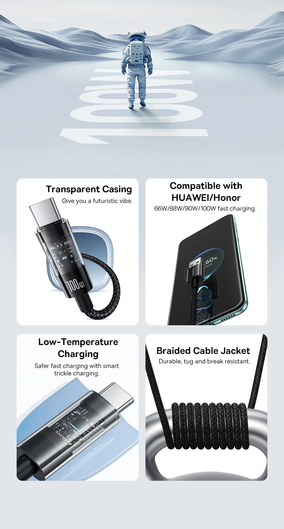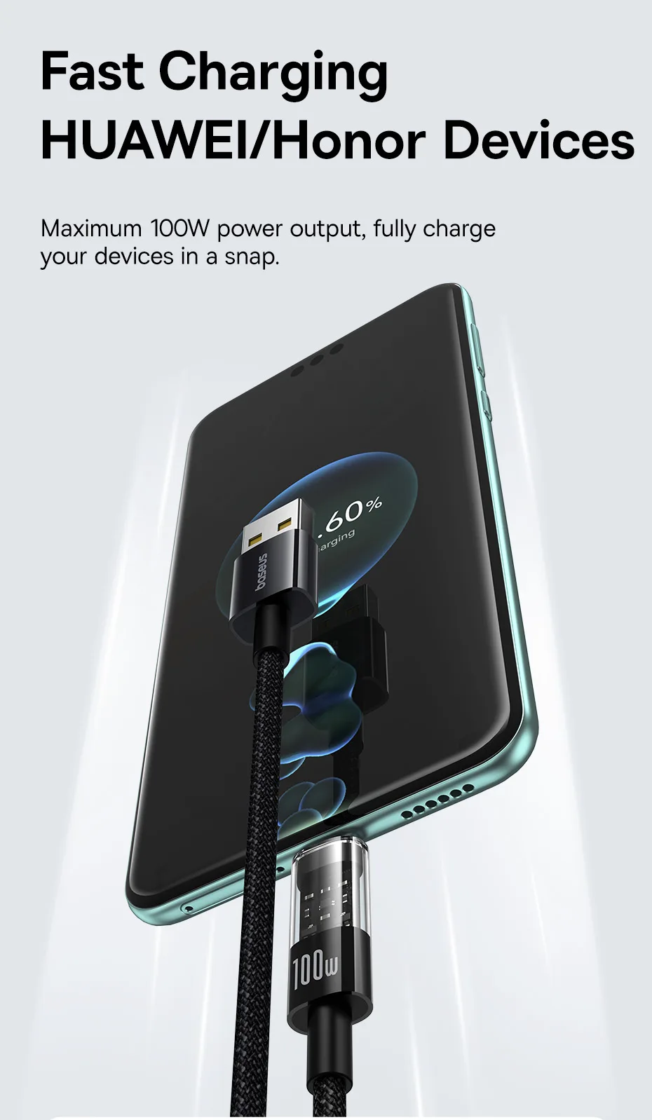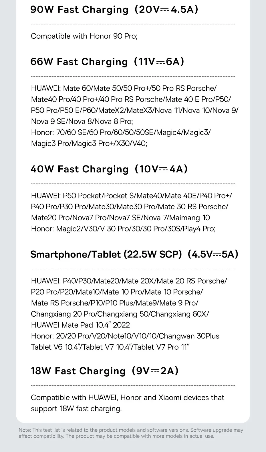Compatible with HUAWEl/Honor: 66W/88W/90W/100w fast charging