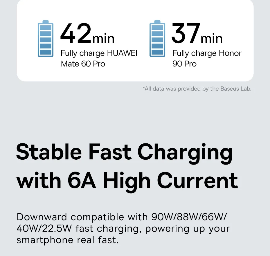 Downward compatible with 90W/88W/66W/40W/22.5W fast charging, powering up your smartphone real fast