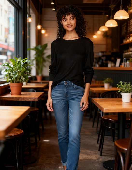 79% Rayon, 19% Polyester, 2% Spandex Imported Pull On closure Machine Wash Soft brushed fabric Balloon sleeve Long sleeve Cuff sleeve hem