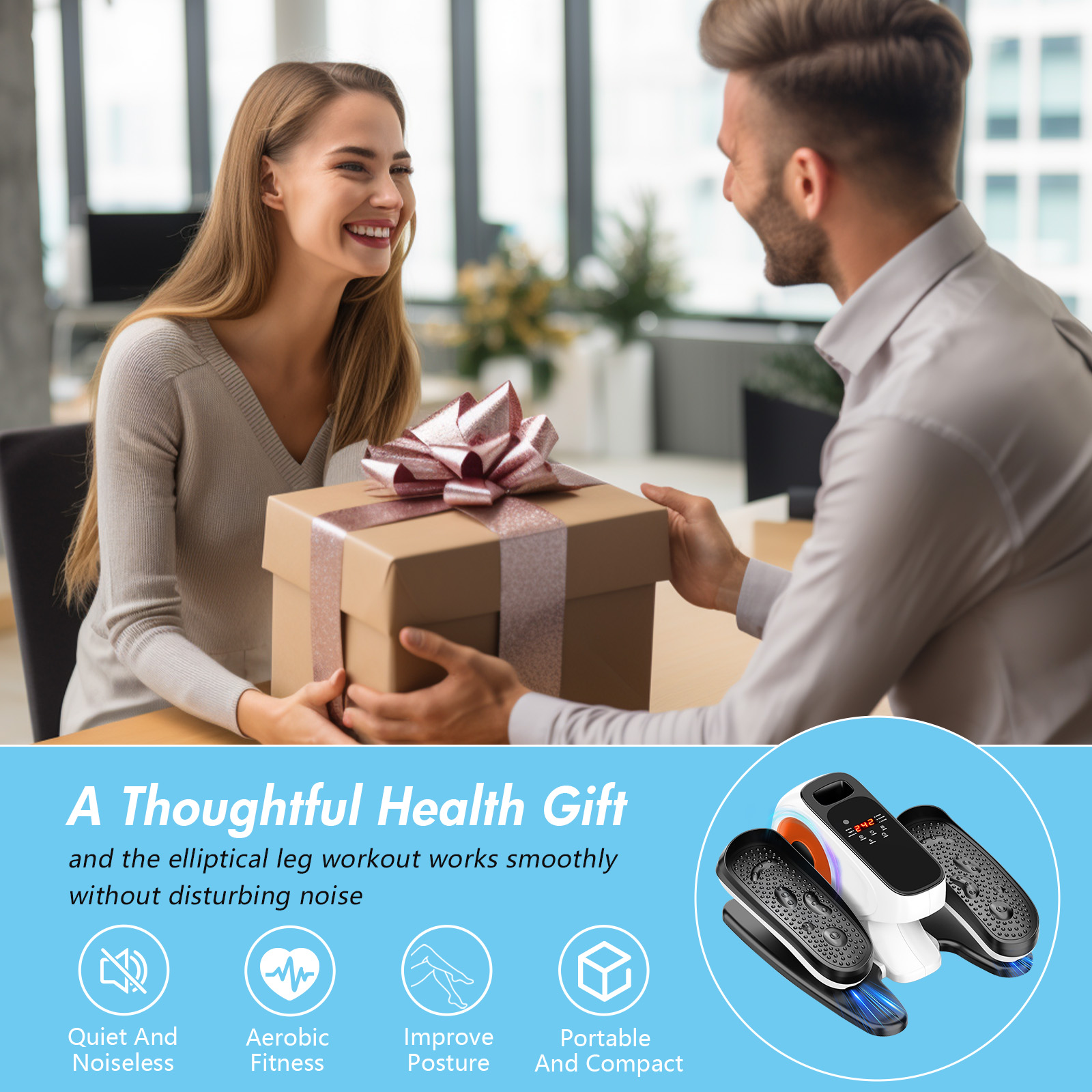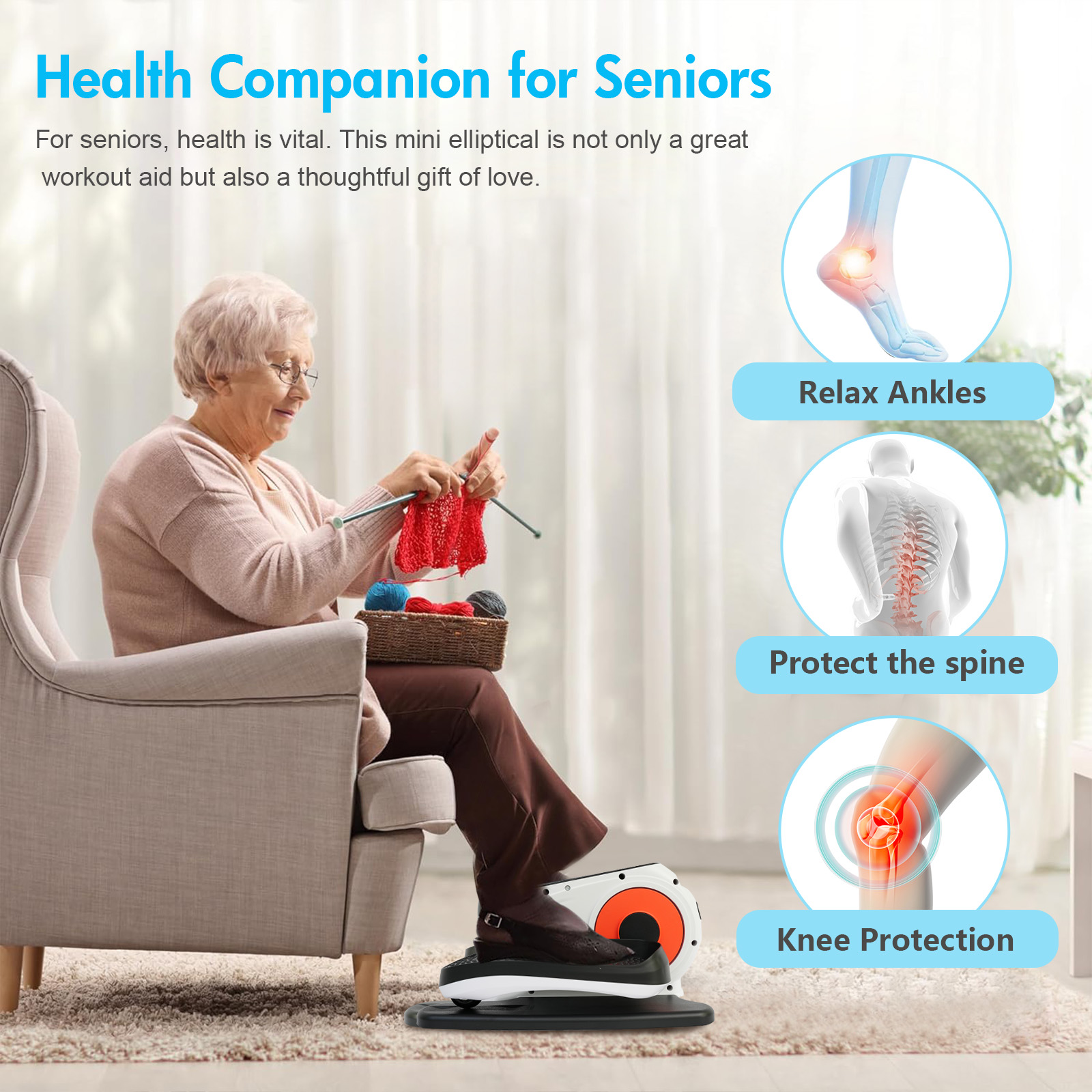 This elliptical machine features advanced magnetic resistance technology for quiet operation without disturbing others. Its built-in high-performance copper motor ensures smooth, powerful workouts. The smart control system includes wireless remote control and a large LED screen for easy operation and mode selection. Its circular motion design protects the knees while effectively exercising leg muscles and supporting joint health. The unique bidirectional pedals enable forward and backward movements for comprehensive fitness results. This elliptical machine promotes blood circulation and strengthens muscles, making it a thoughtful gift for family members, parents, and grandparents. Stay healthy and enjoy every day with care and love.