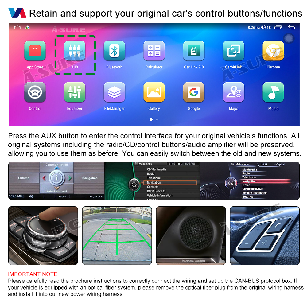 DUAL SYSTEM: Retain your factory system, you can use your OEM radio/CD player /iDrive by the new radio's AUX app.