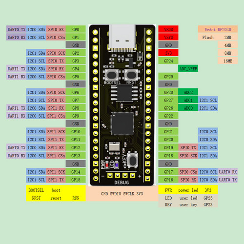 • RP2040 microcontroller chip designed by Raspberry Pi