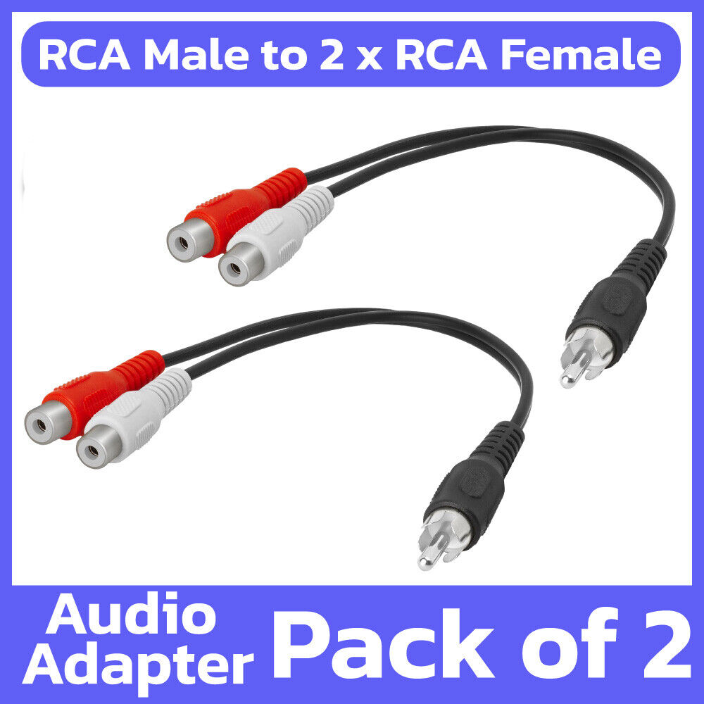 Y Adapter splitter cable with 1 RCA Male to 2 Female RCA plug stereo audio adapter extension cord connectors. Red/white color-marked connectors for quick, easy left-and-right hookups.