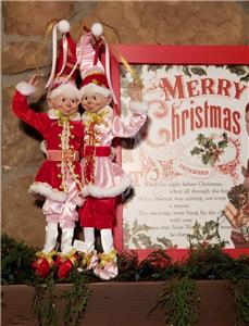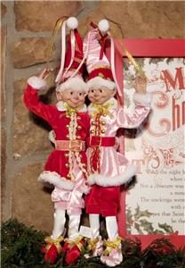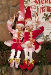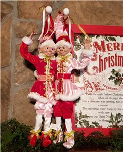 The listing is for one set of two 16" Christmas Pink, Red, White & Metallic Gold clothed Elves as shown.