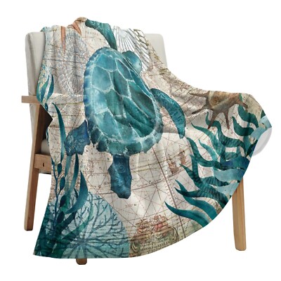 Flannel Fleece Bed Blankets Lightweight Cozy Throw Blanket for Couch Sofa Bedroom Adults Kids,Sea Turtle Ocean Animal Landscape 49x79 inch