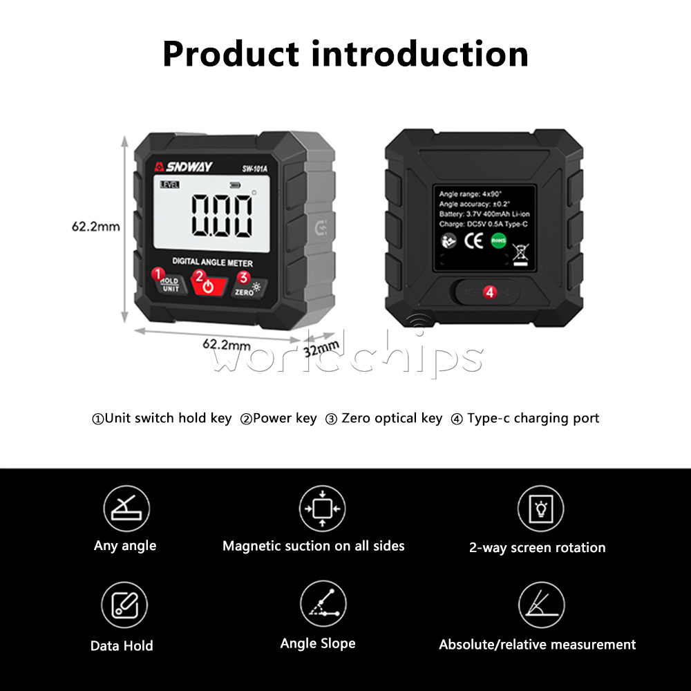 1. High-precision inclination measurement: electronic angle measurement in real time, high precision and convenient and fast