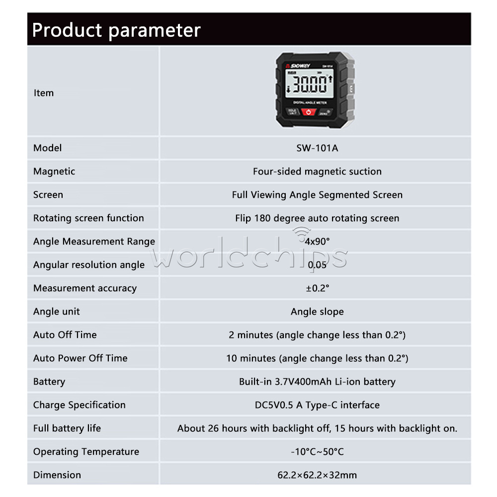 Auto power off time: 10 minutes (angle change less than 0.2°)