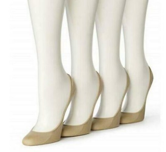 Decidedly discrete, these stretchy microfiber liners give the appearance of going barefoot. Comfortable and completely wearable with almost any shoe, theyre an ideal everyday option. From HUE. Small/Medium: fits shoe sizes 4-7 Medium/Large: fits shoes sizes 7-10 Includes 4 pairs per pack 96Percent nylon/ 4Percent spandex Machine wash Imported