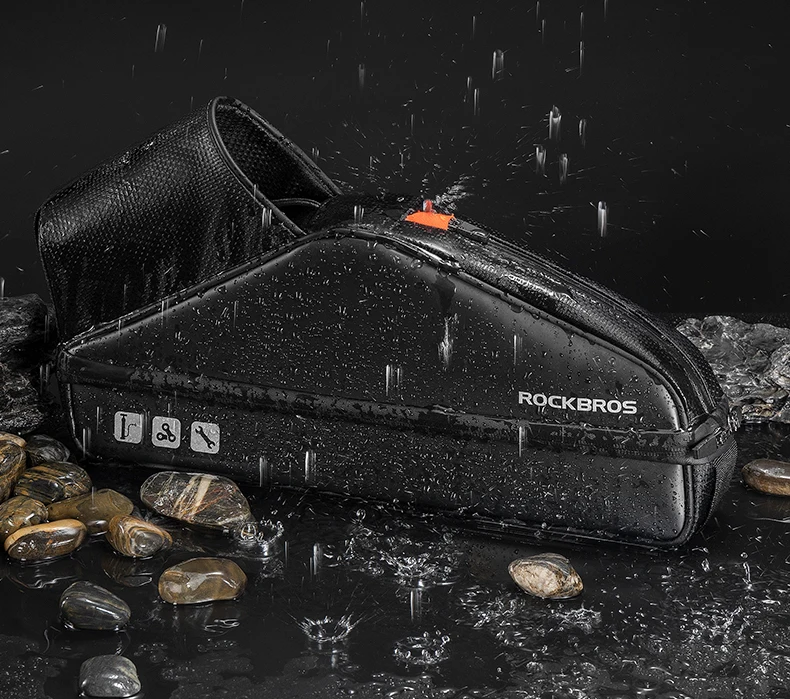 La sacoche de vélo est composée de tissu en nylon et de TPU de haute qualité et est extrêmement imperméable. Vous pouvez facilement les utiliser les jours de pluie sans vous soucier que les articles soient mouillés. (Remarque : veuillez ne pas tremper le sac lorsqu'il y a des objets à l'intérieur.)