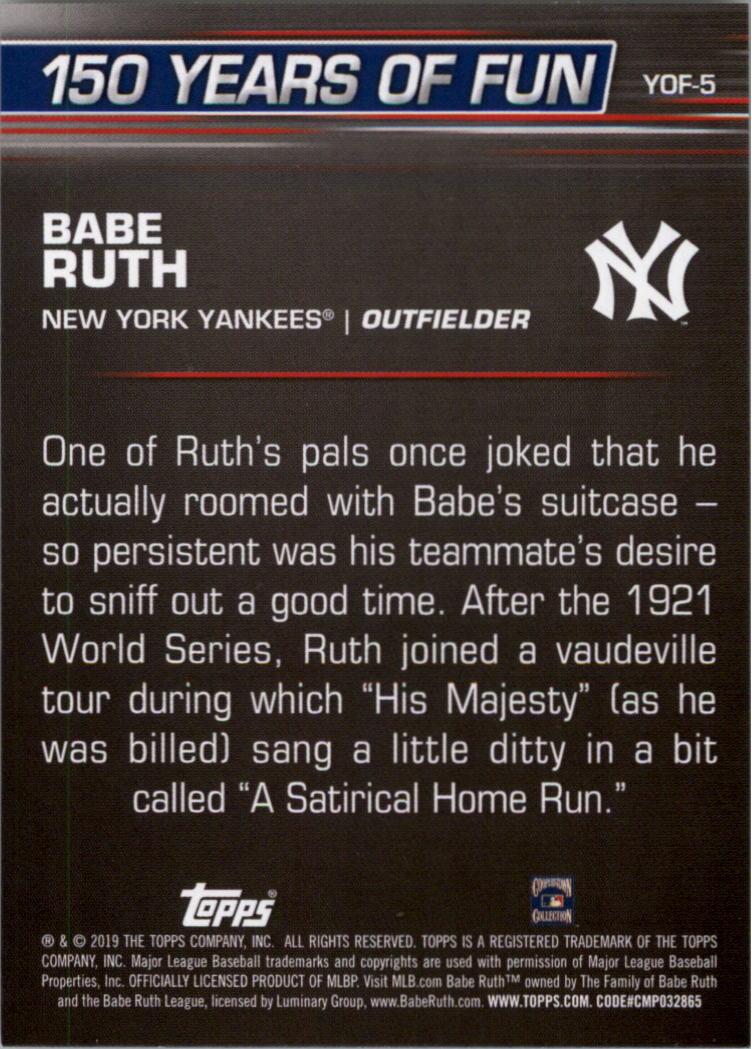 2019 Topps Opening Day 150 Years of Fun #YOF5 Babe Ruth - NM-MT