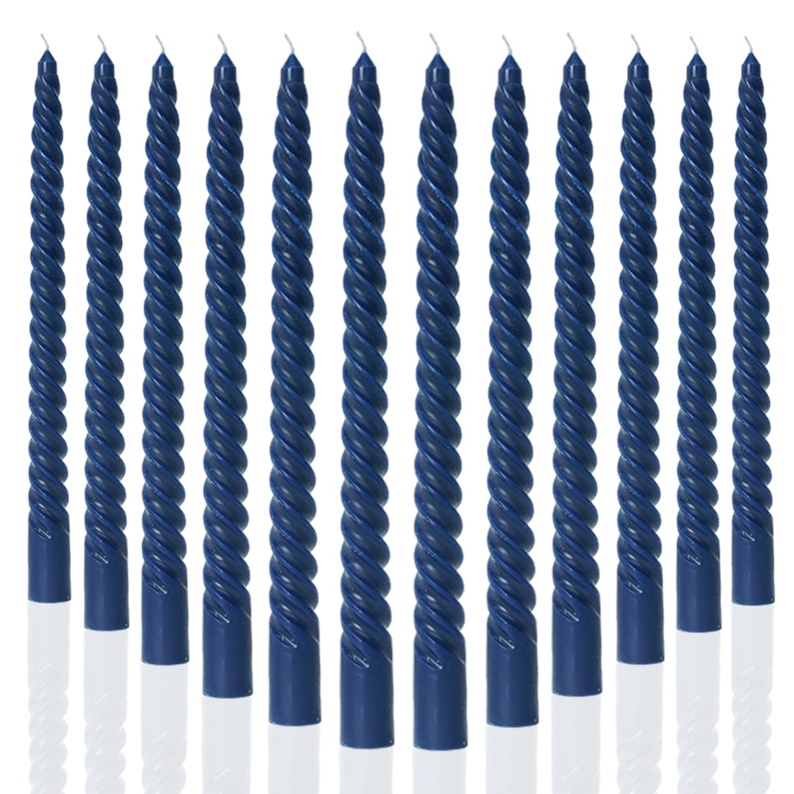 Navy Taper Candles Stick Spiral Twisted Candles-Set of 12 for Decoration Weddings Party Church-Unscented Dripless Candles,10inch(F-Navy)