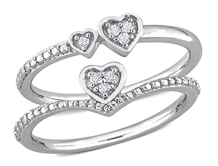 Celebrate love with this elegant 2-piece set of Diamond Accent Heart and Double Heart Promise Rings. Crafted in stunning sterling silver, each ring showcases delicate heart designs adorned with sparkling diamond accents, symbolizing timeless affection. Perfect for making a promise or simply cherishing a special bond, this set radiates elegance and sentiment. Make your moments unforgettable with these beautiful rings.