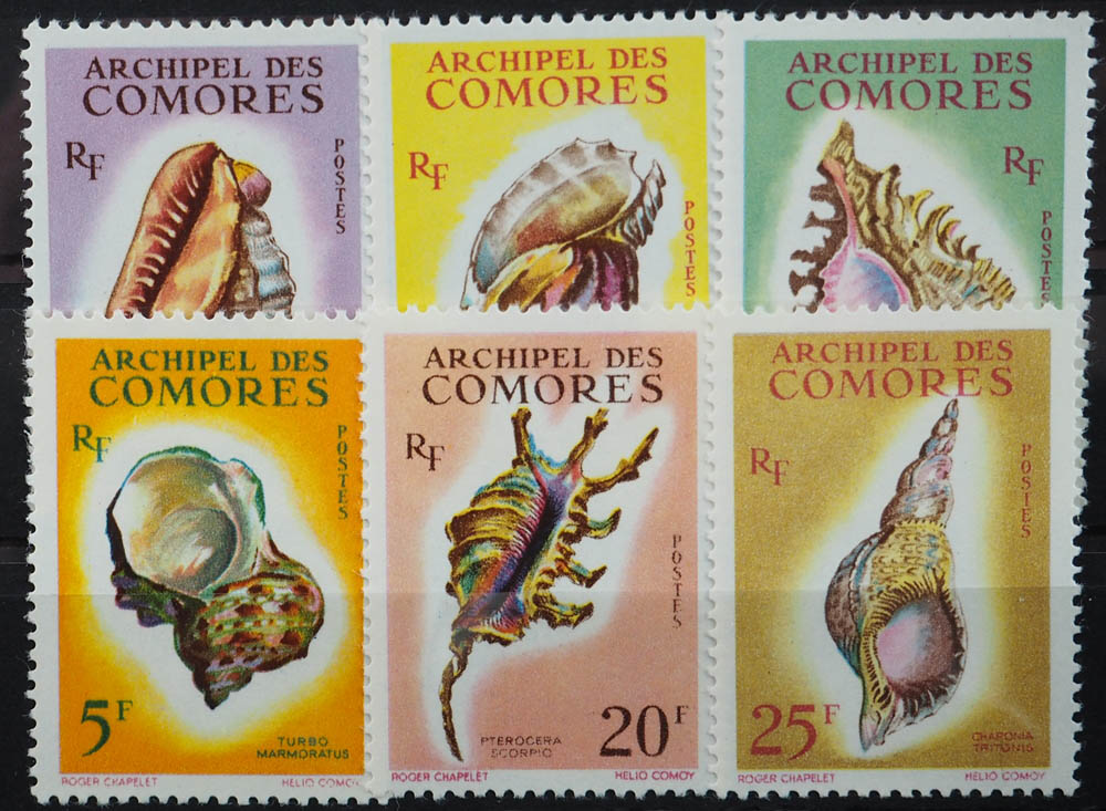 1962 Komoren, Serie Meeresschnecken, postfrisch/MNH, MiNr. 42/47, ME 30,-