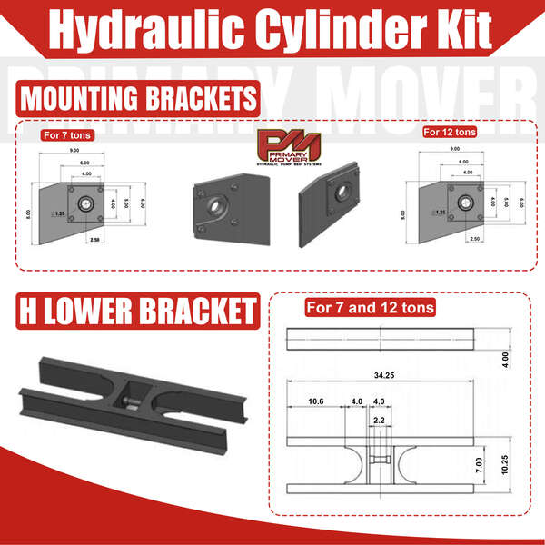 Upgrade your hydraulic dump bed kit with the Prime Mover Telescopic H Bracket, engineered for exceptional support and durability. Designed to be compatible with both 7k and 12k telescopic cylinder kits, this bracket is crafted from high-strength materials to provide the stability and reliability needed for heavy-duty applications. Whether you're a hobbyist, contractor, or business, this H Bracket enhances the performance and longevity of your truck or trailer hydraulic dump bed systems.
