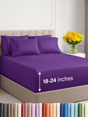 Extra Deep Full Sheet Set - 6 Piece Breathable and Cooling Sheets - Hotel Luxury Bed Sheets Set - Easy & Secure Fit - Soft, Wrinkle Free and Comfy Sheets Set - Purple Sheet Set with Extra Deep Pockets