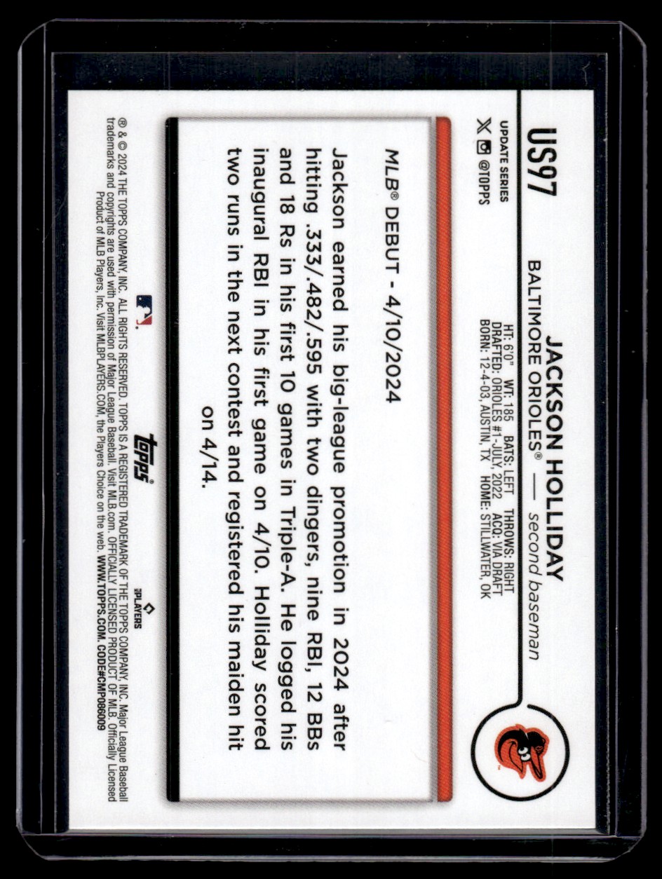 2024 Topps Update Jackson Holliday RC Baltimore Orioles #US97
