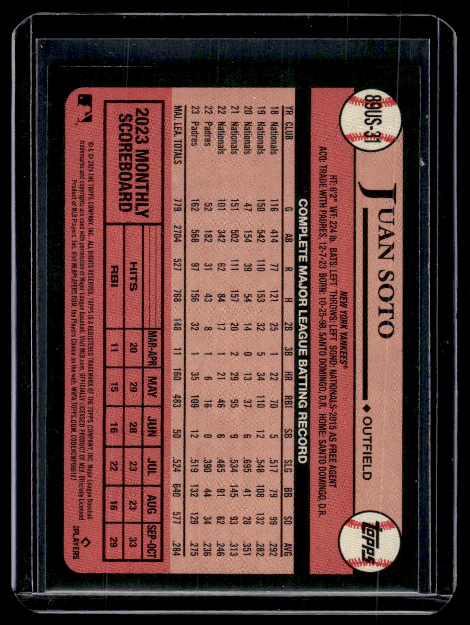 2024 Topps Update 1989 Baseball Juan Soto New York Yankees #89US-31