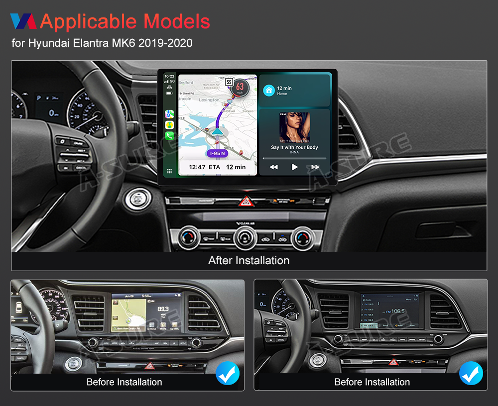 13.1 inch Car Stereo Radio GPS Navigation Head Unit For Hyundai Elantra 2019-2020 HD Touchscreen Multimedia Player, 8 Core 4G+64G Android Auto Wireless Carplay, SWC, DSP, Bluetooth