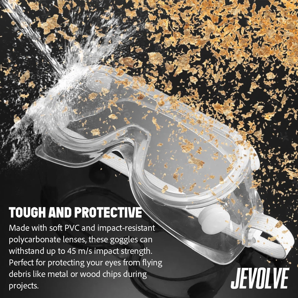 Medical grade soft PVC frame with a high-impact-resistant polycarbonate and bulletproof lenses that can withstand up to 45 m/s of impact strength. Painting goggles protect your eyes from light to moderate impact hazards like the metal or wood chips that come flying when you work on projects.