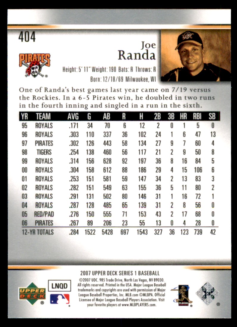 | 2007 Upper Deck Joe Randa Pittsburgh Pirates #404 |