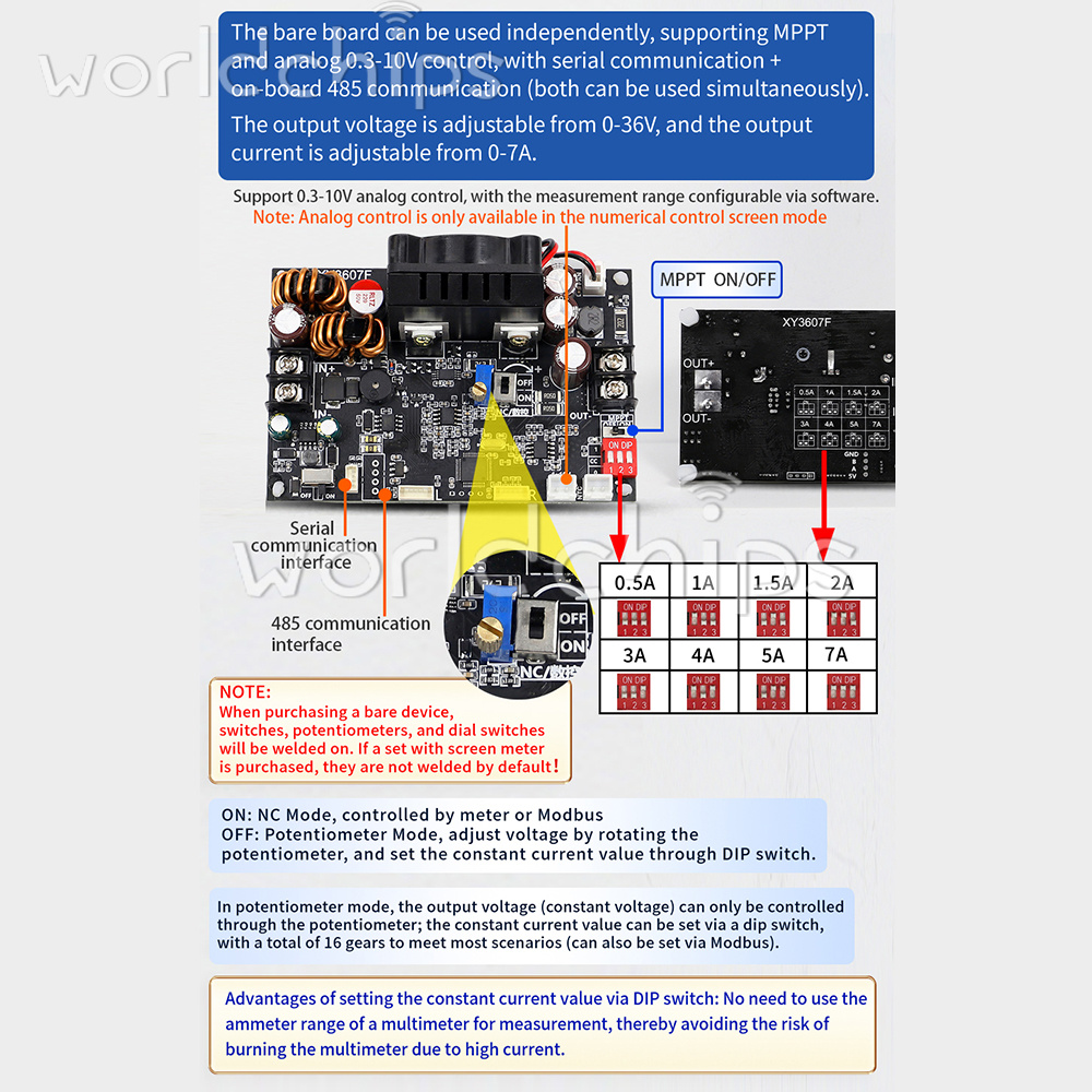 Output overcurrent protection: 0 -7.2A adjustable, default 7.2A