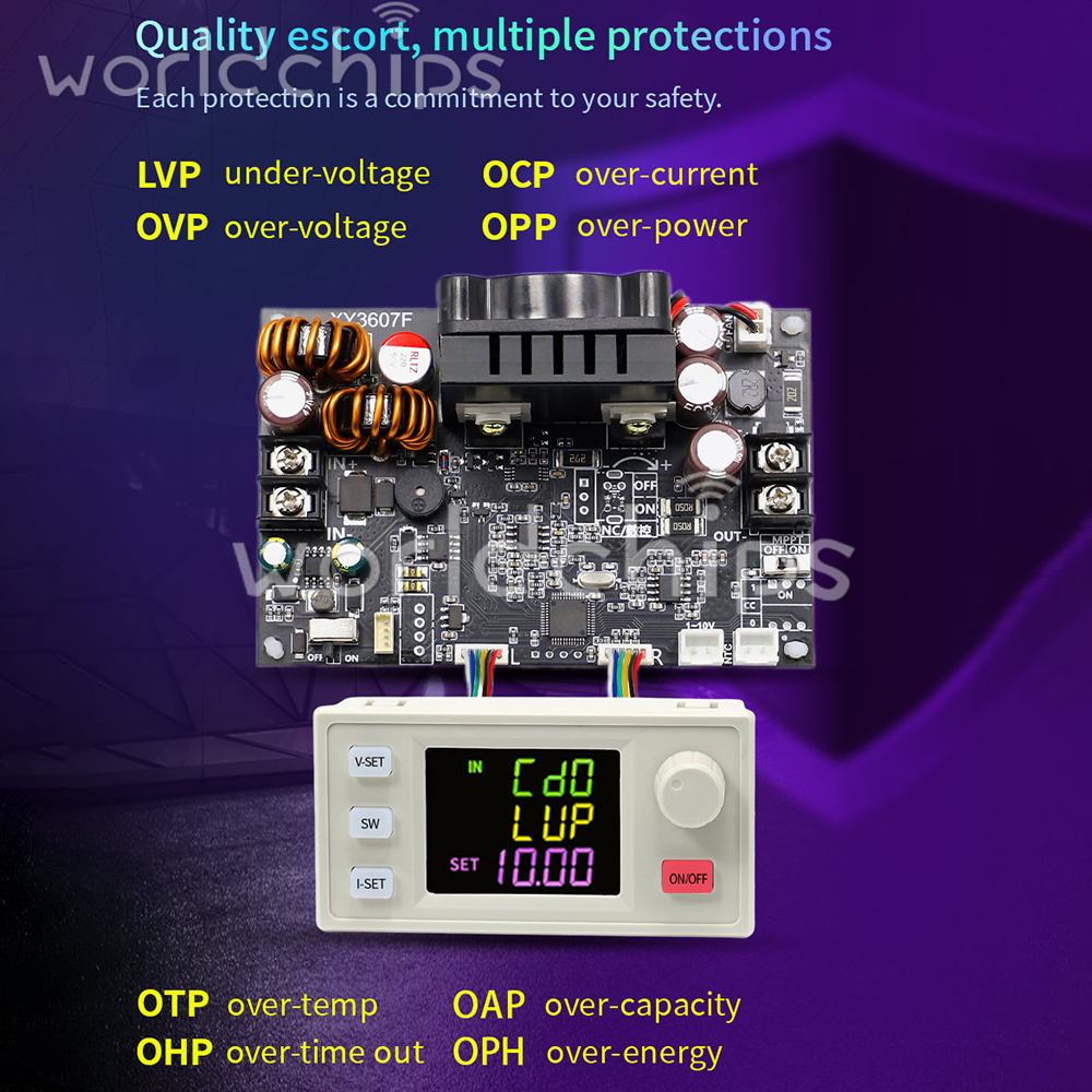 Output over-voltage protection: 0-38V adjustable, default 38V