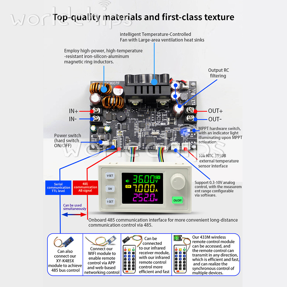 6. The product has a wide range of applications, there is a backflow prevention function can be charged to a variety of rechargeable batteries, and with MPPT function to support MPPT solar charging, can be connected to the external temperature probe to support over-temperature protection and so on.