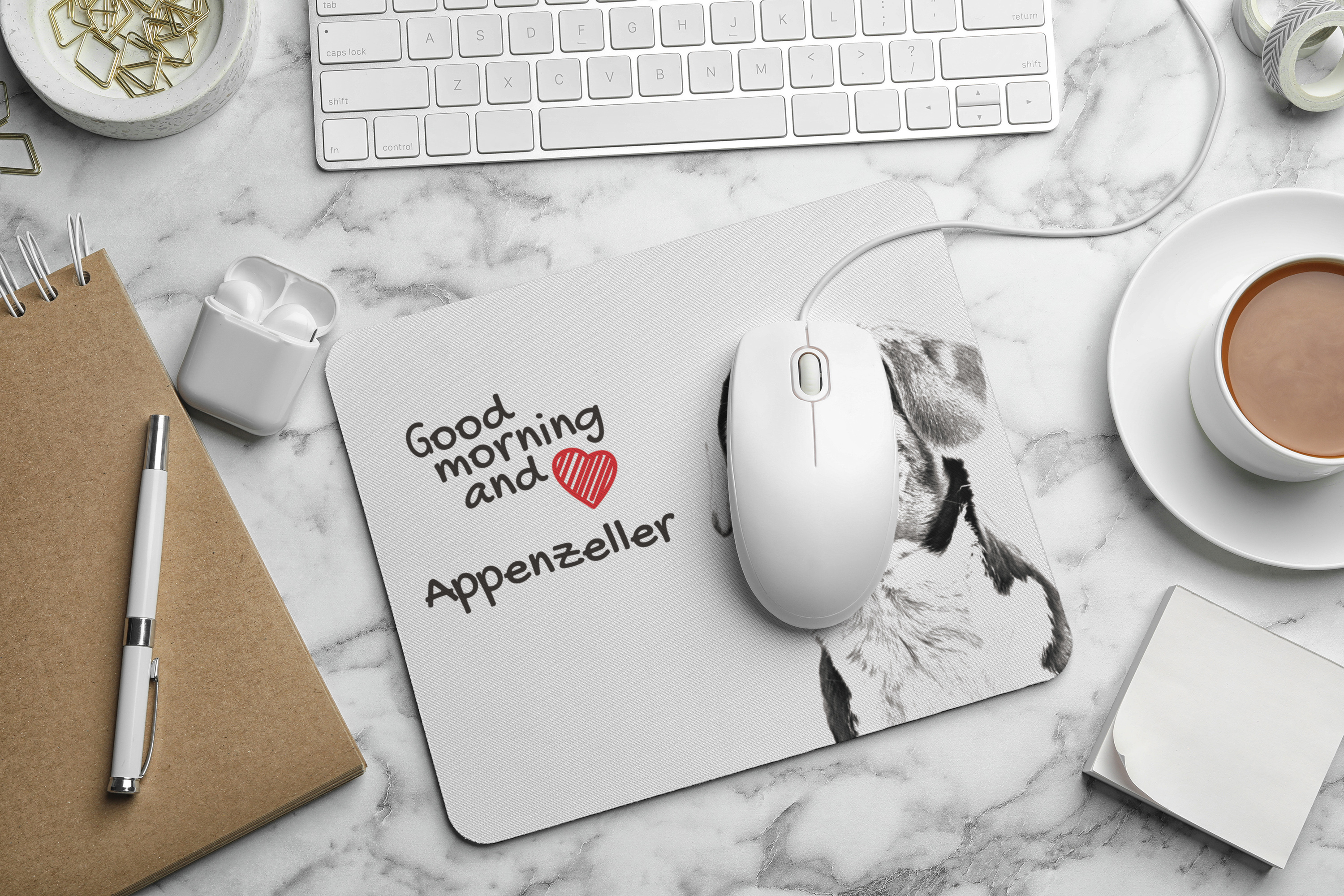 Appenzeller - muismat met bedrukking, gepersonaliseerde muismat met hond, uniek gadget voor kantoorpersoneel van het merk Art-Dog Art-Dog