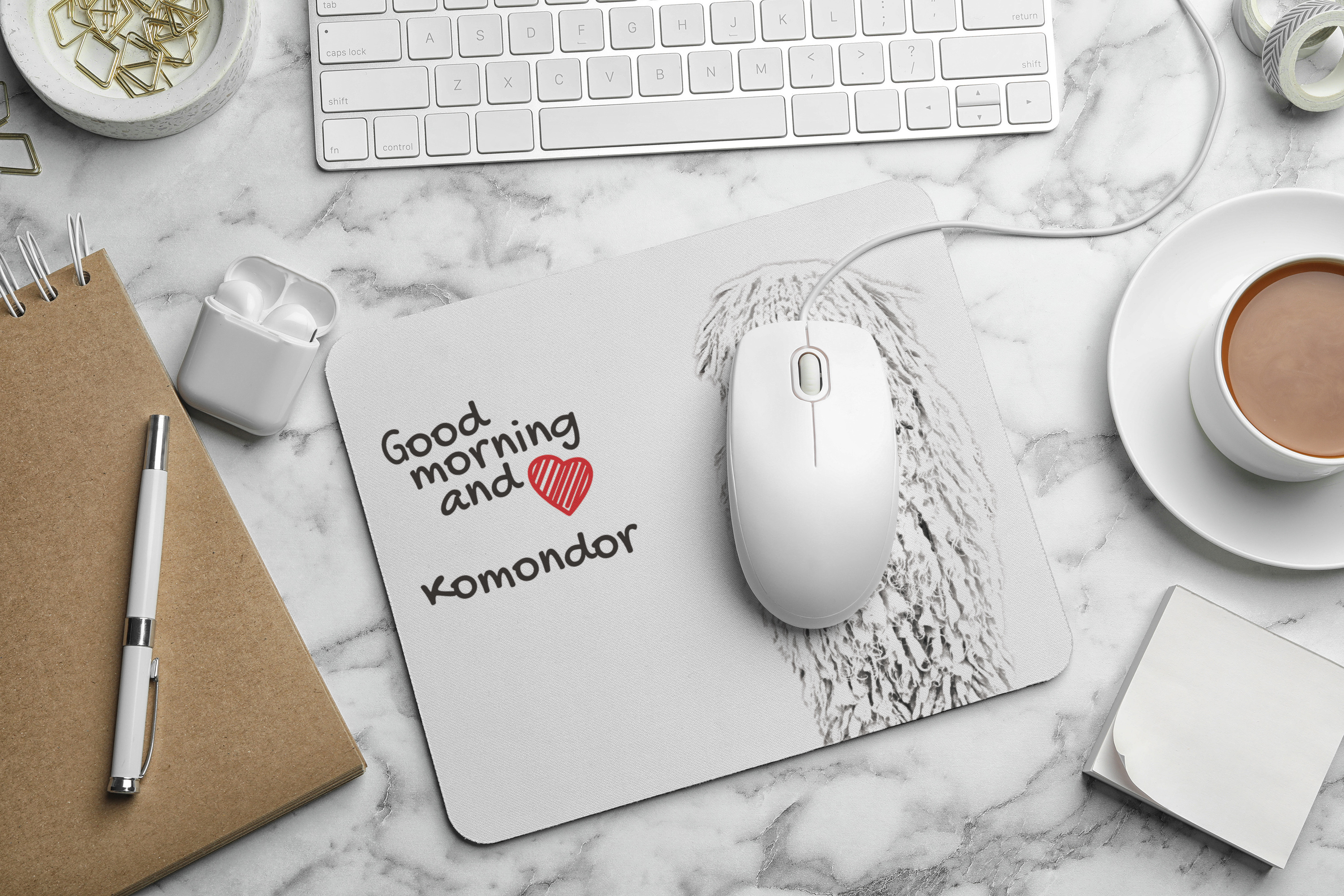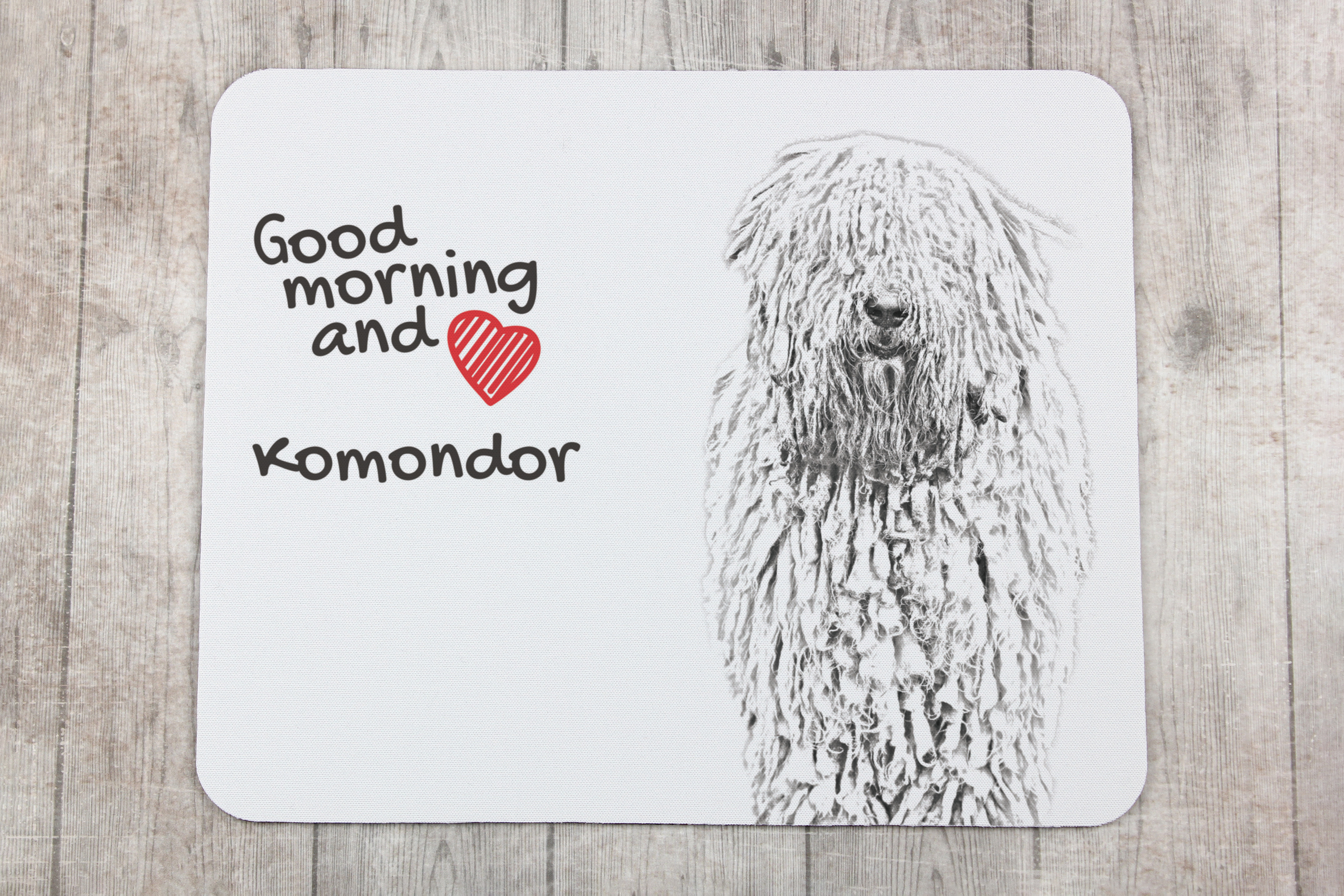Komondor - muismat met bedrukking, gepersonaliseerde muismat met hond, uniek gadget voor kantoorpersoneel van het merk Art-Dog Art-Dog