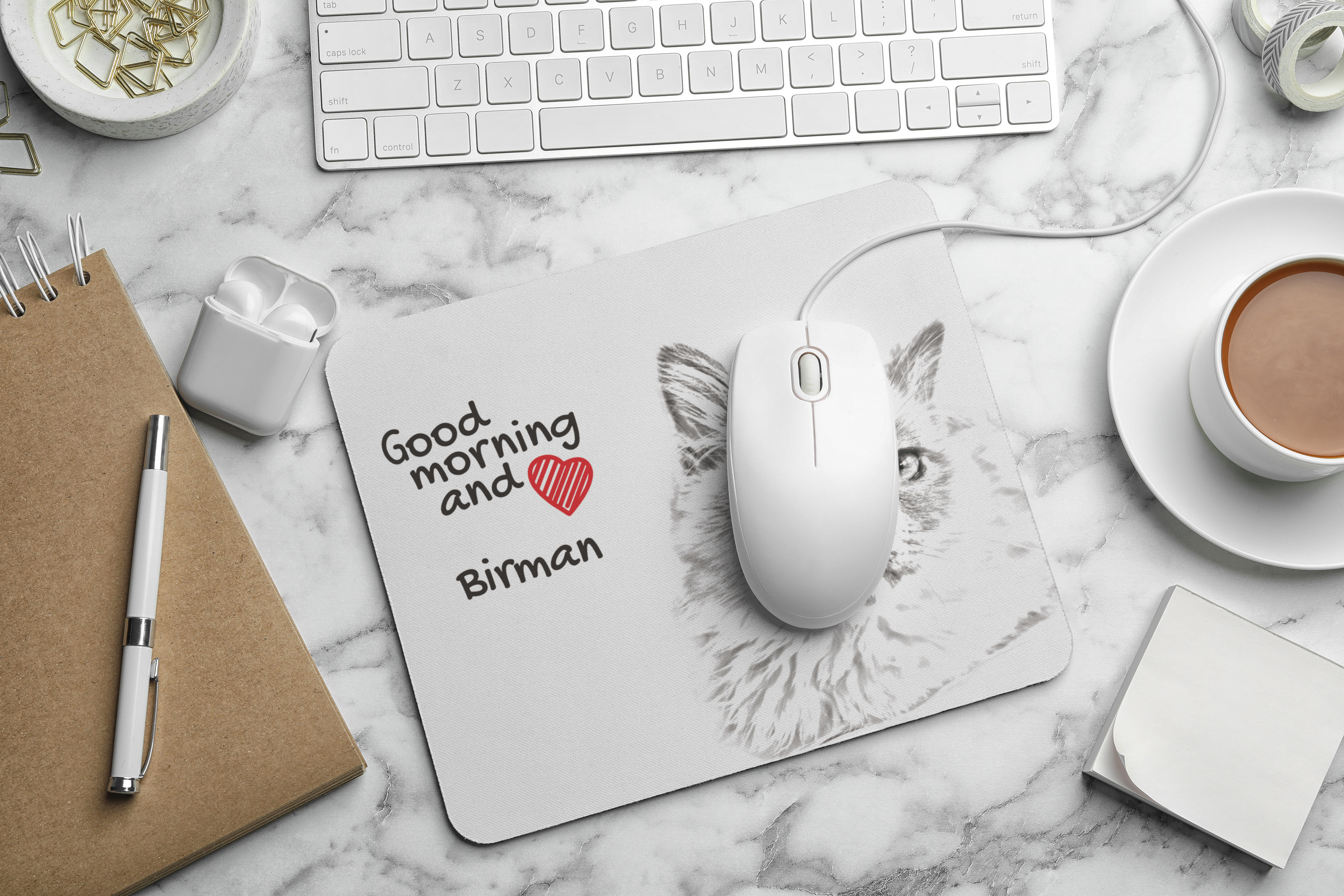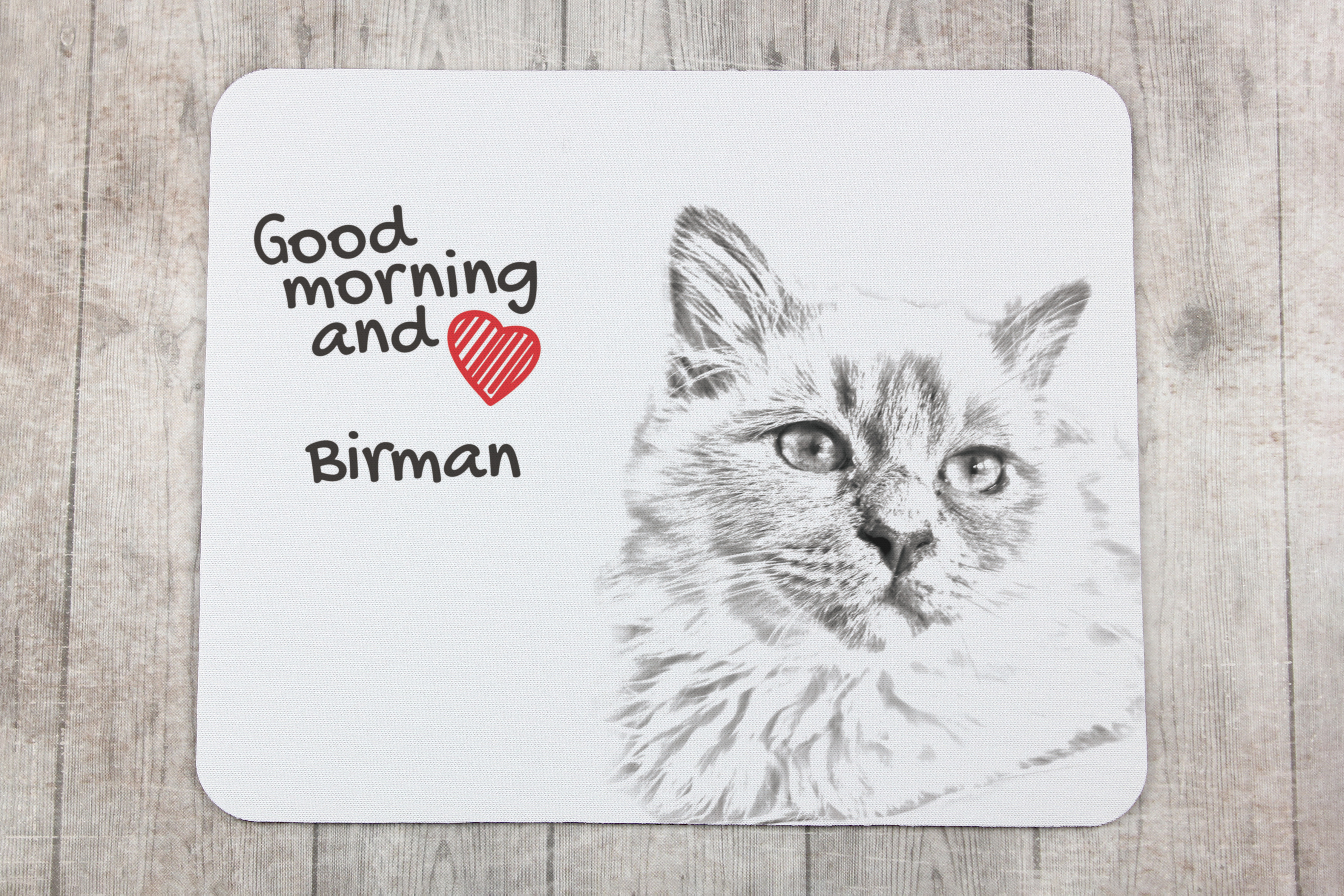 Birmaan - muismat met bedrukking, gepersonaliseerde muismat met kat, uniek gadget voor kantoorpersoneel van het merk Art-Dog Art-Dog