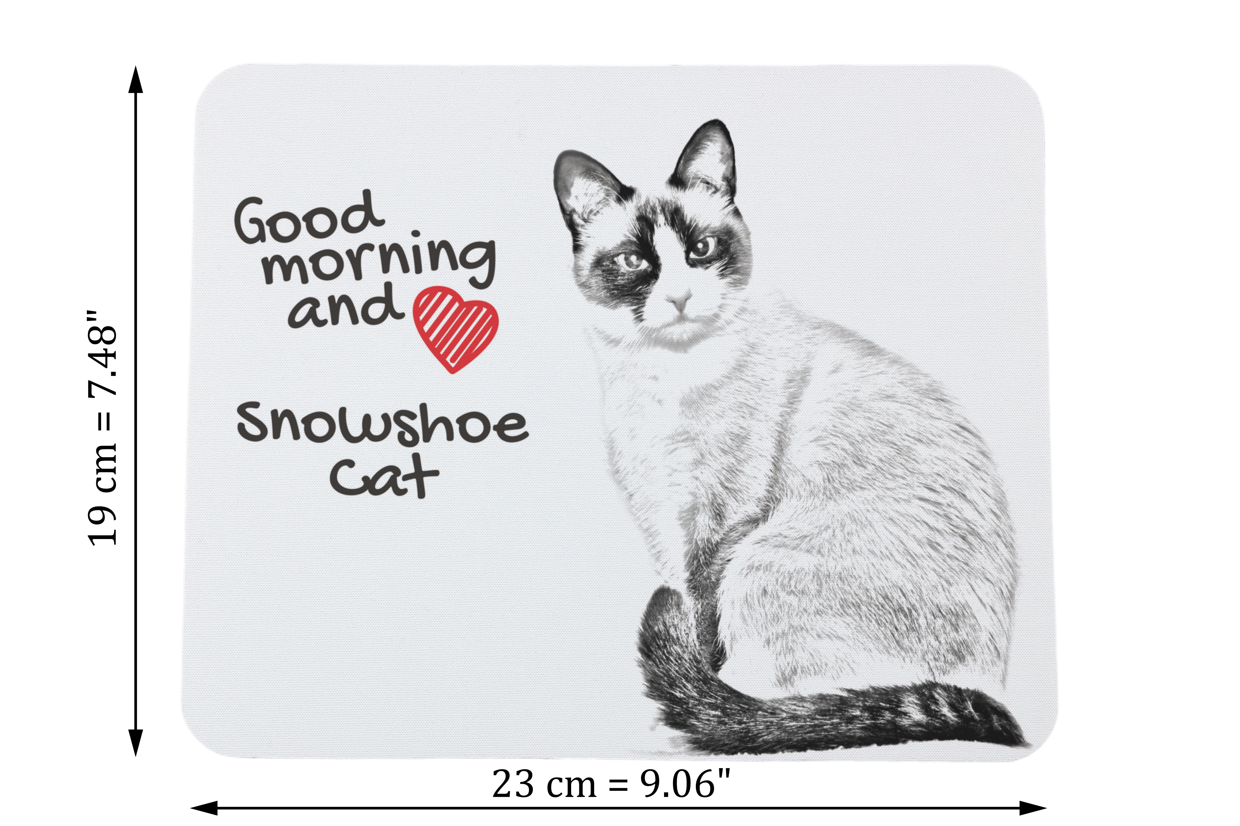 Kat op sneeuwraketten - muismat met bedrukking, gepersonaliseerde muismat met kat, uniek gadget voor kantoorpersoneel van het merk Art-Dog Art-Dog