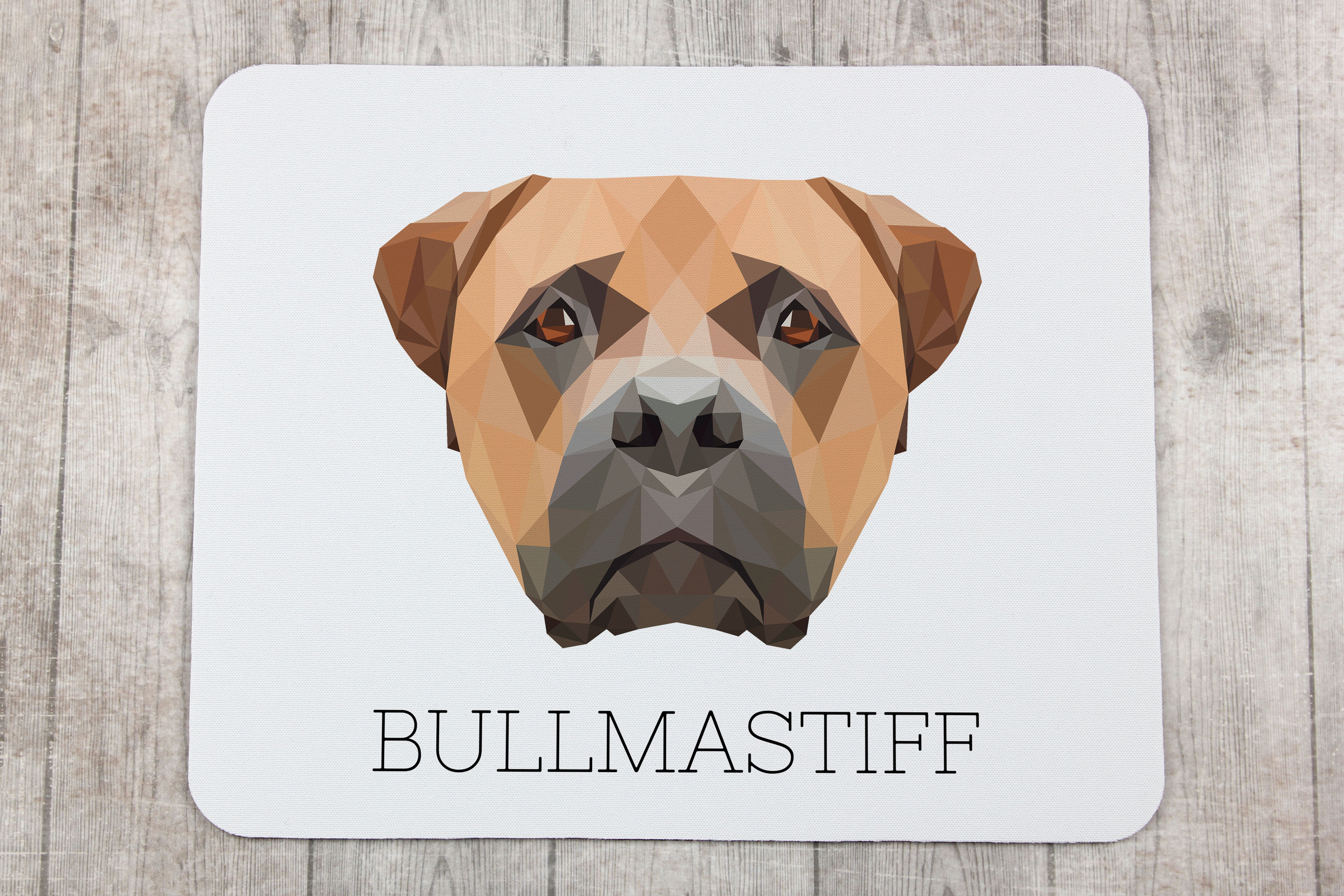 Bullmastiff - geometrische muismat met foto en tekst van Art-Dog Art-Dog