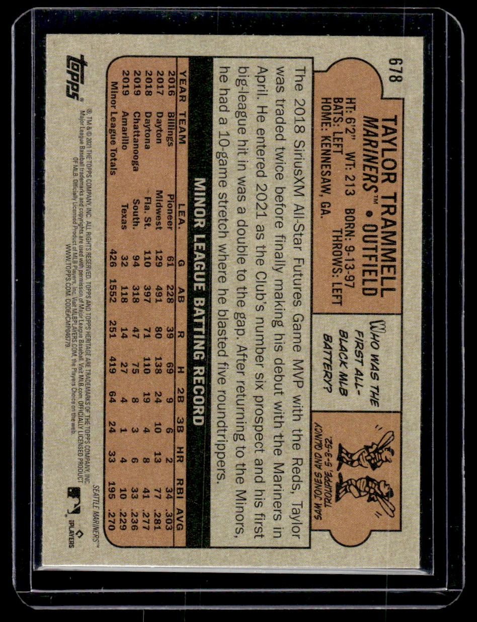 2021 Topps Heritage Taylor Trammell RC Seattle Mariners #678