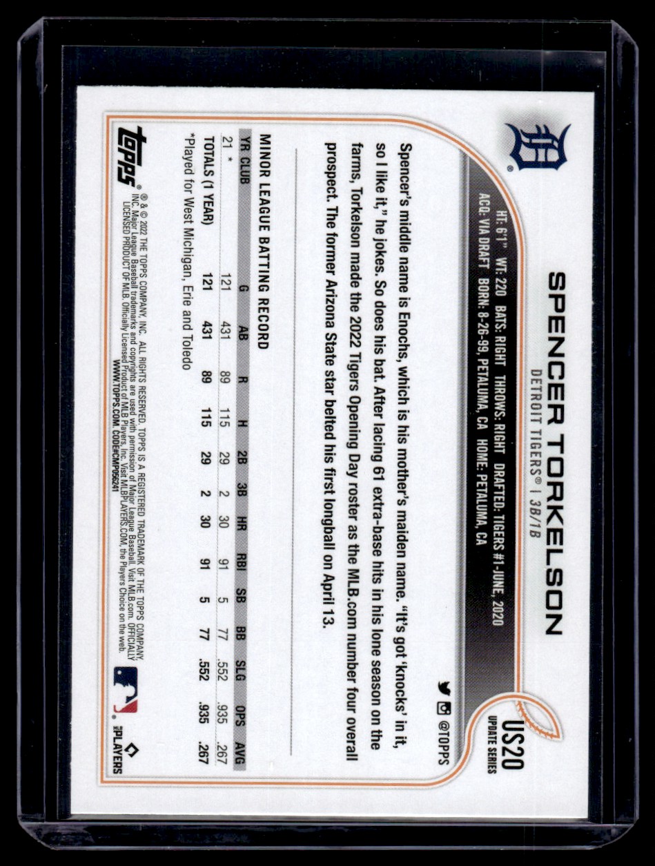 2022 Topps Update Spencer Torkelson RC Detroit Tigers #US20