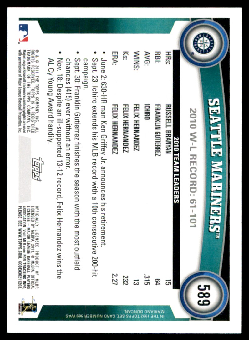 | 2011 Topps Seattle Mariners Seattle Mariners #589 2105 |