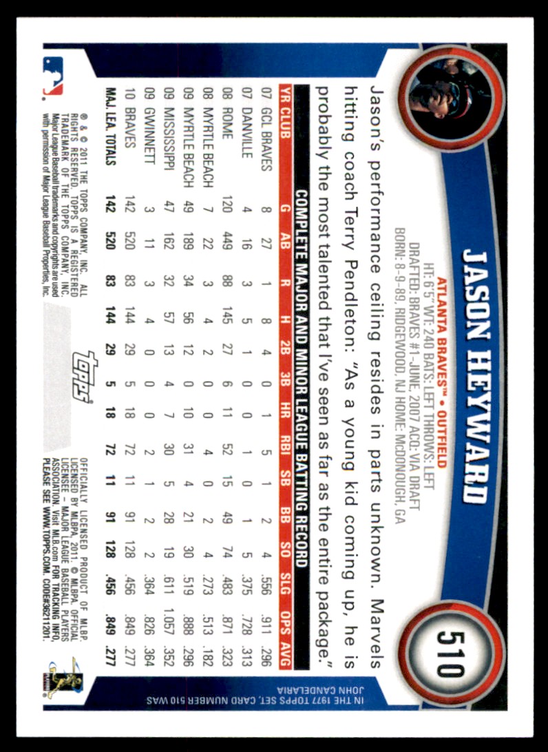 | 2011 Topps Jason Heyward Atlanta Braves #510 2105 |