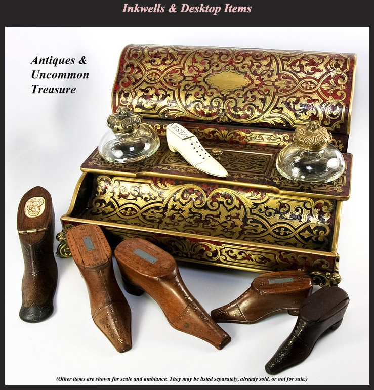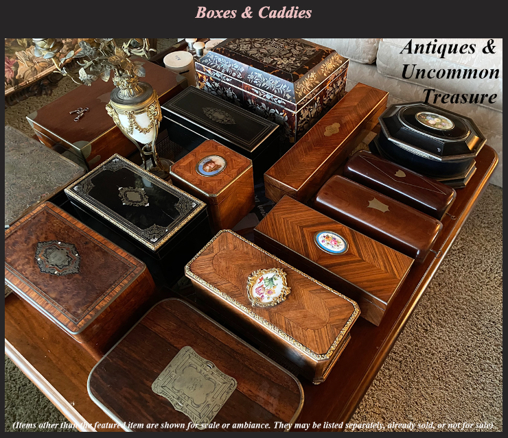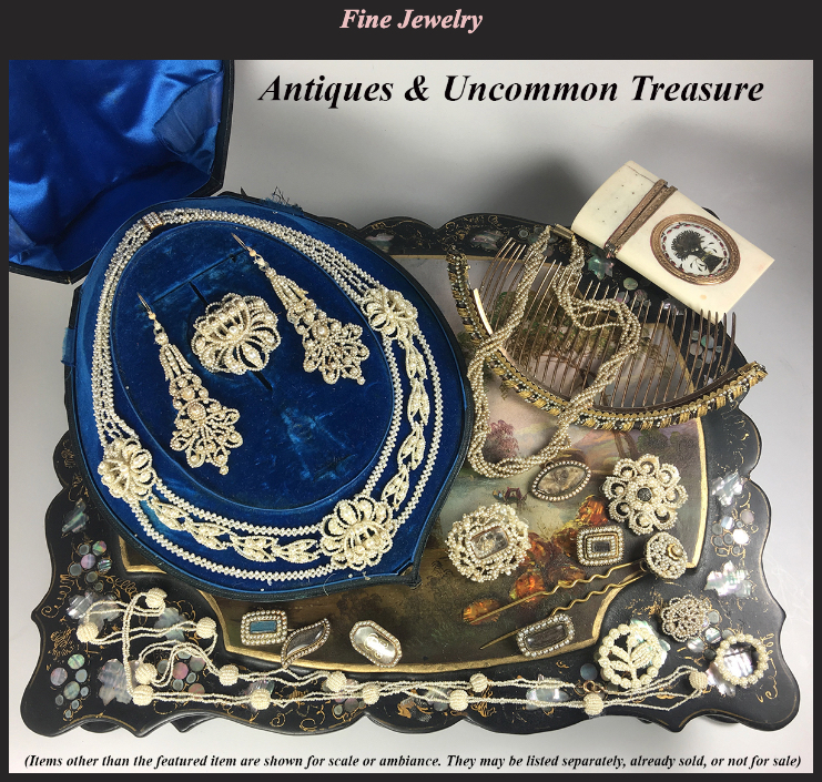 From antique French sterling silver, Georgian - Victorian jewelry, Limoges or Sevres or fine porcelain, enamels, tortoise shell boxes, etui, necessaire; portrait miniatures, fine European paintings & tapestries, or Hermes to Rolex and uncommon & thrilling items of museum quality. Visit us often. The array and inventory change often in our dynamic shop.