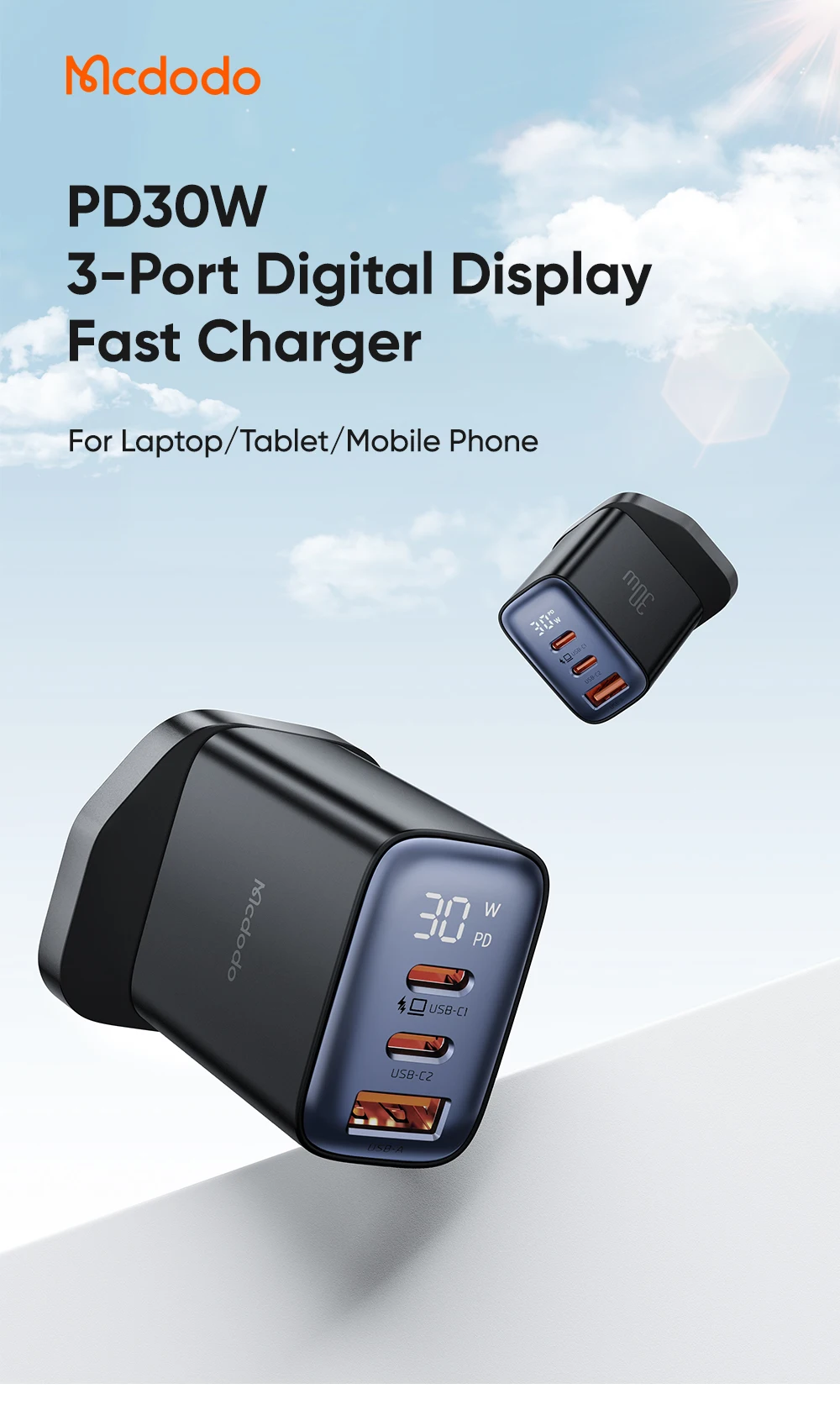 Product | CH-217 30W 3-Port Digital Display Fast Charger(UK) |