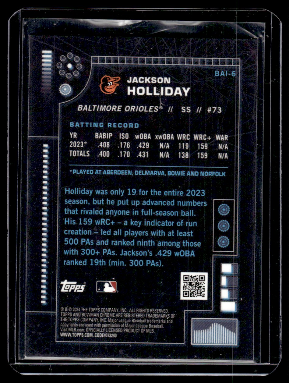2024 Bowman Chrome AI Jackson Holliday RC Baltimore Orioles #BAI-6