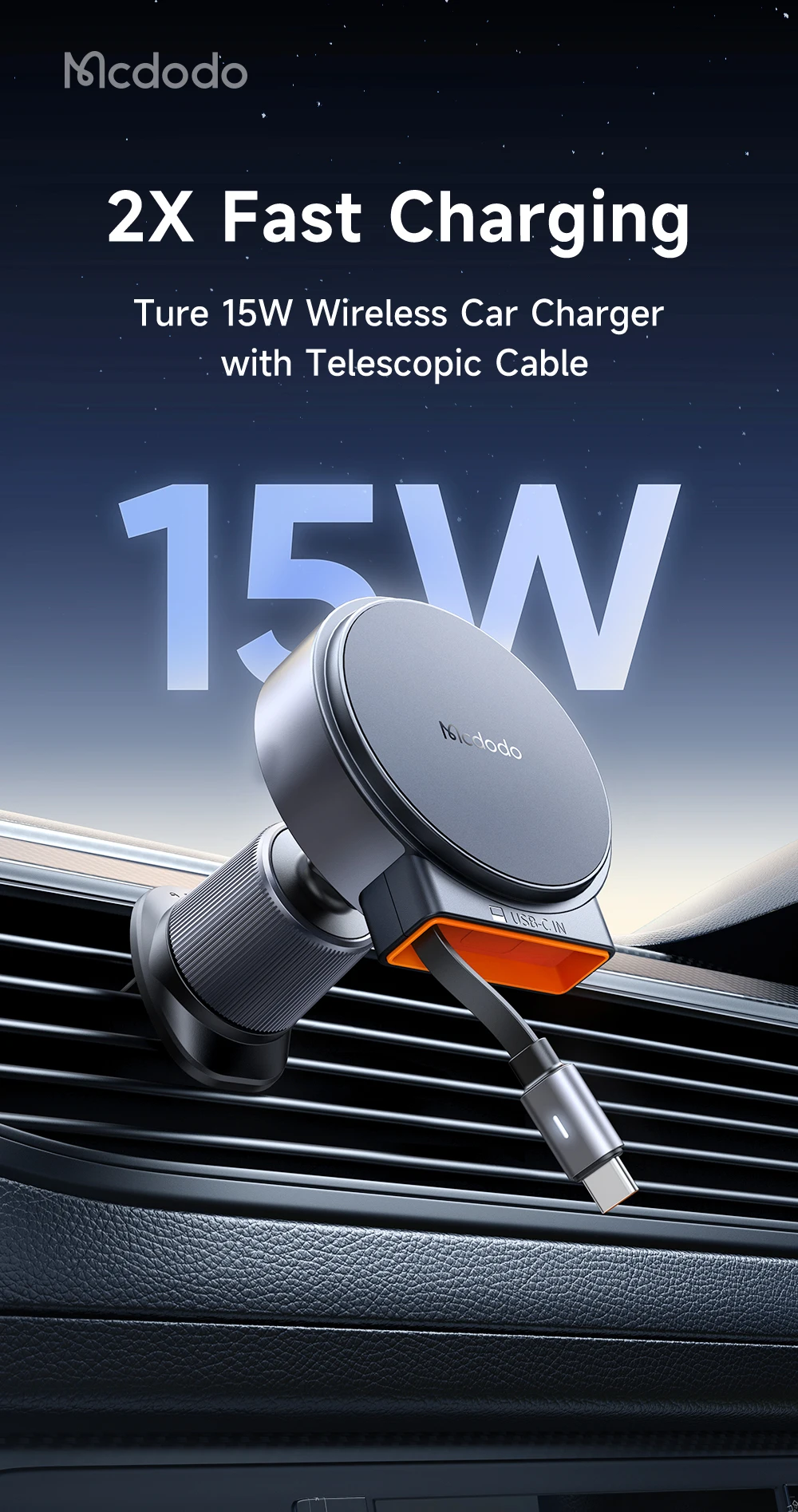 Product | 15W Magnetic Wireless Car Charger with Telescopic Type C Cable(For iPhone12-iPhone15) |