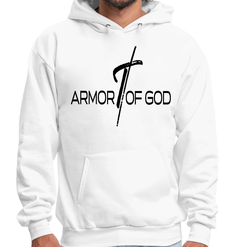 Mens Graphic Hoodie, Armor Of God Black Illustration. This trendy graphic hoodie is meticulously crafted for individuals with a creative spirit. This fashion-forward hoodie is more than just a casual top—it's a manifestation of personal style. Design with a youthful flair, the hoodie seamlessly fits into the wardrobe of creative minds who seek a blend of comfort and modern aesthetics. Whether you're drawn to chic styles, or simply looking for a cool and edgy piece to express your personality, this graphic hoodie effortlessly combines functionality with a distinctive design that resonates with the artistic soul.