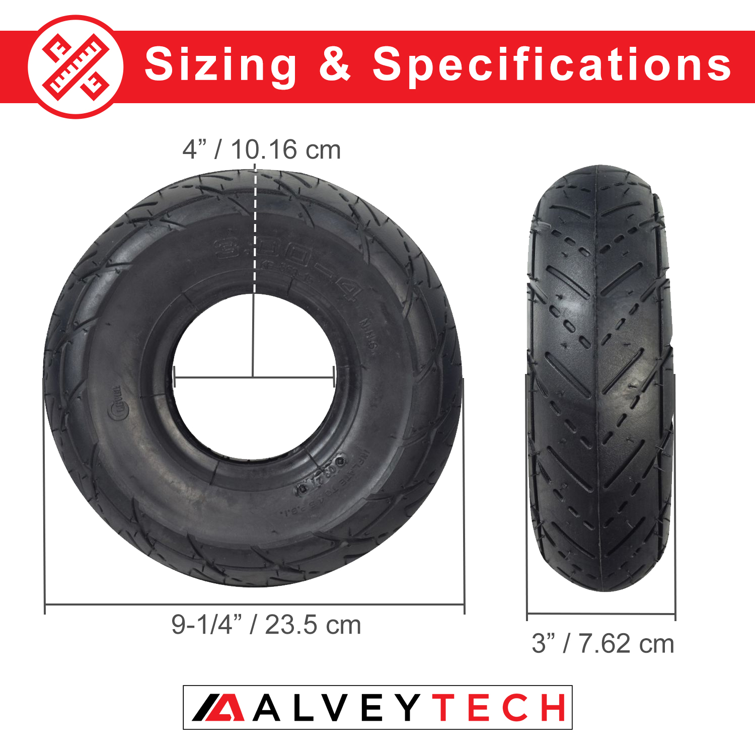 Tire size: 3.00-4 (10"x3", 260x85)