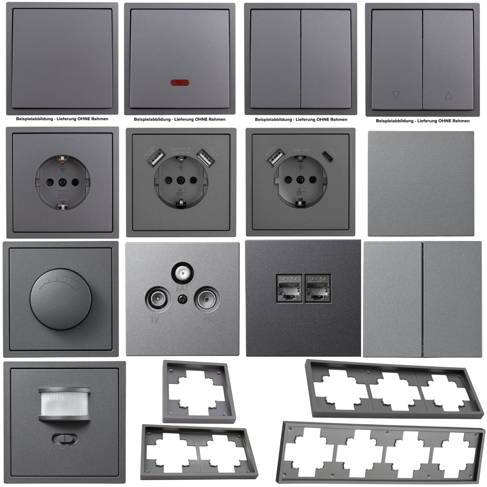 MILOS anthrazit Steckdosen Serie Steckdose USB-C Antenne Taster Schalter Dimmer