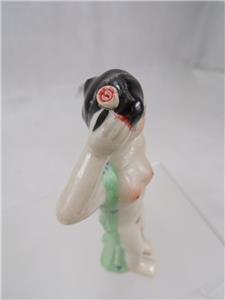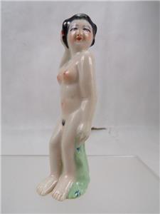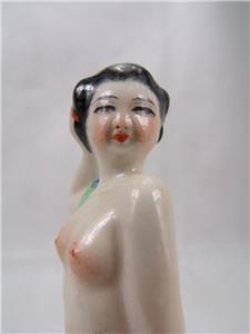 We have a Chinese perfume bottle for sale in the form of a standing naked lady. It is in good, used order and condition with no chips or cracks. The figure stands 119mm in height and the stopper is disguised as a bun in her hair. She is made from porcelain with hand painted decoration. We will gladly combine. Please add items to your cart, rather than purchasing individually, then proceed to checkout and request combined total.