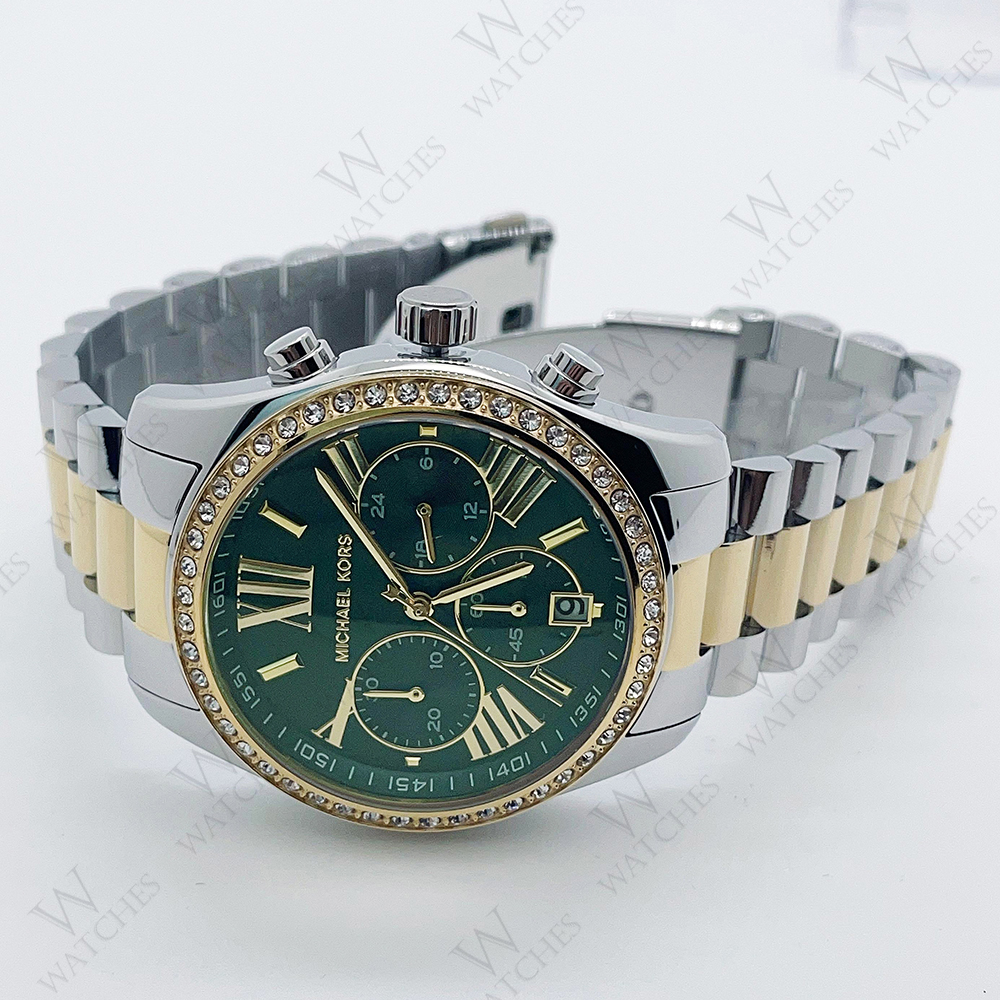 Michael Kors MK7303 Lexington Lux Two Tone Bracelet Green Dial Women's Watch