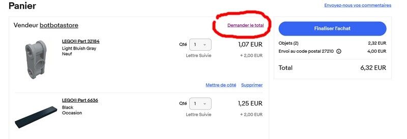 Demandez-nous de vous calculer le total avec frais de port avant de payer!