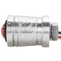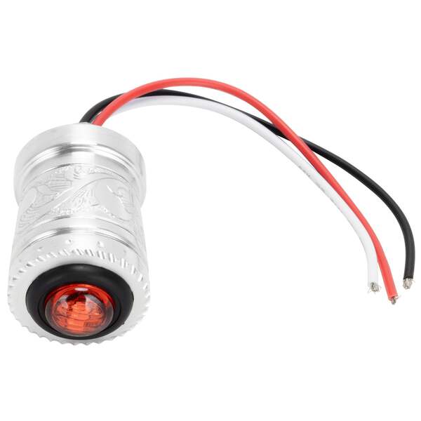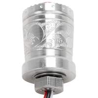 These custom made tail lights by MVKustoms measure approximately 1.5" x 2" and feature a super bright 3 LED, 3 wire bulb, and include a hollow 1/2" bolt and crush washer for mounting. The lights are hand made on a lathe, then hand engraved, so every light is unique! Available in brass or aluminum.