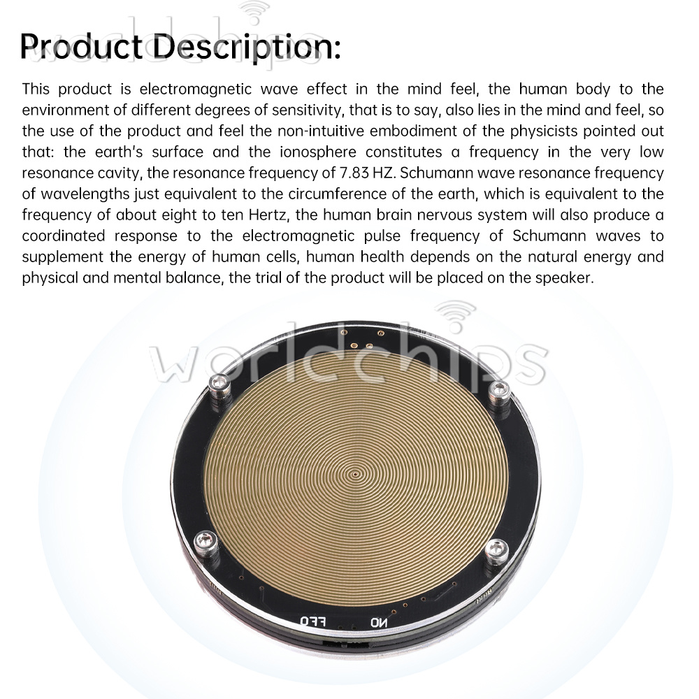 OverviewThis product is electromagnetic waves acting on the mind feeling, the human body is sensitive to the environment to a different degree, that is to say, also lies in the mind and feeling, so the use of the product and feeling non-intuitive embodiment of the physicists pointed out that: the earth's surface and the ionosphere constitutes a frequency in the very low resonance cavity, the resonance frequency of 7.83HZ.