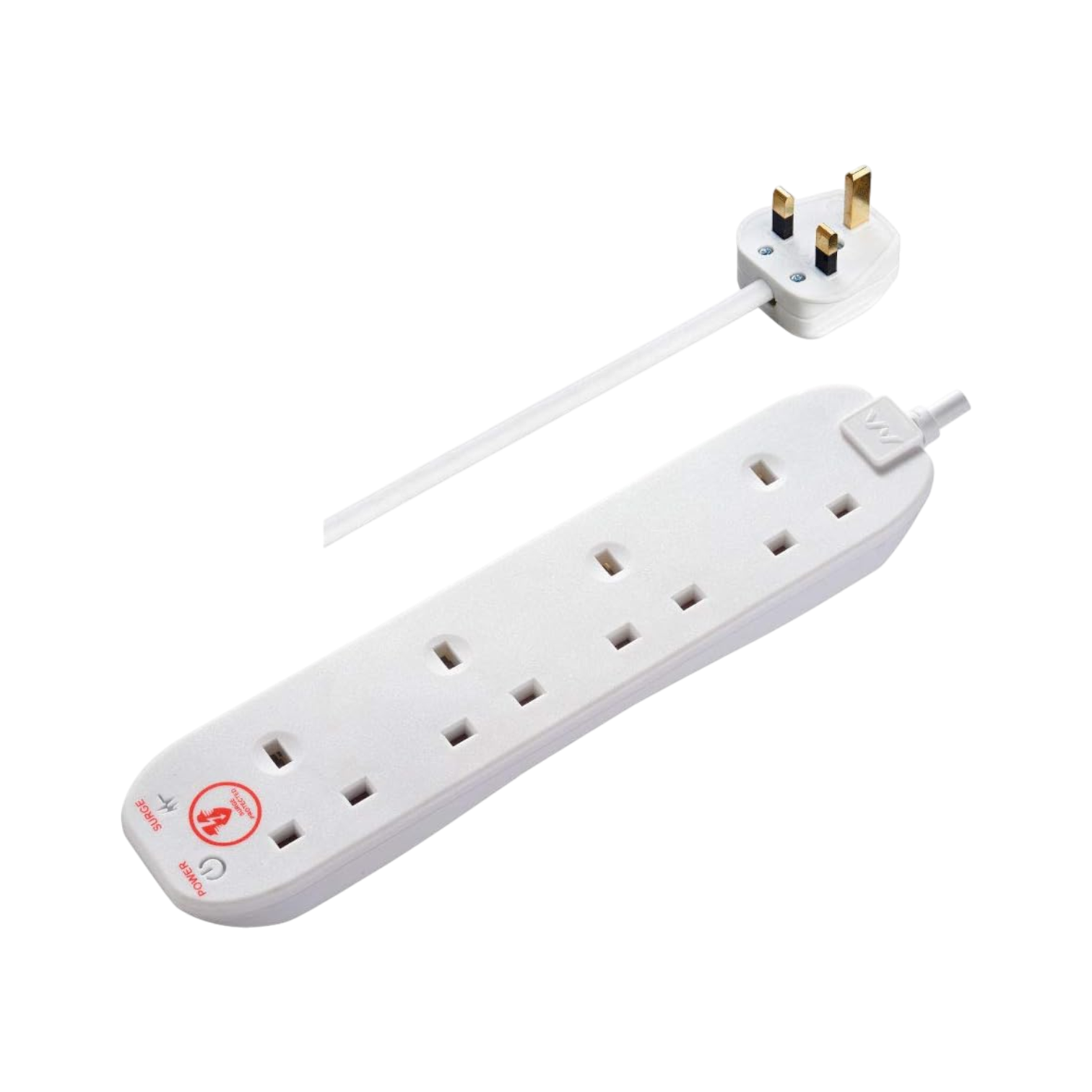 Masterplug Four-Socket Power Surge-Protected Extension Lead, 4 Metres, White