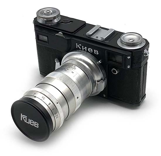 Made by Arsenal factory in Kiev, Ukraine. This is collectible camera. This camera body is Contax copy. This camera is here rarer than the "common" Fed-s and Zorki-s. Kiev cameras have very well optic and are able take surprisingly well pictures.